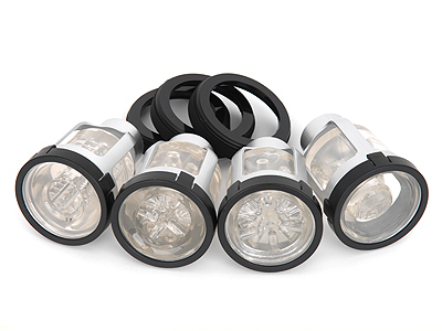 スペーサーは3個セット。1個の厚みが1cmなので自分のペニスの長さに合わせてはめ込めば刺激を与える部分を変えることができます。インナーカップはどれも非貫通型なので使用後、簡単に洗浄できるところがいいですね。今後の専用アクセサリにも大いに期待が持てます。
